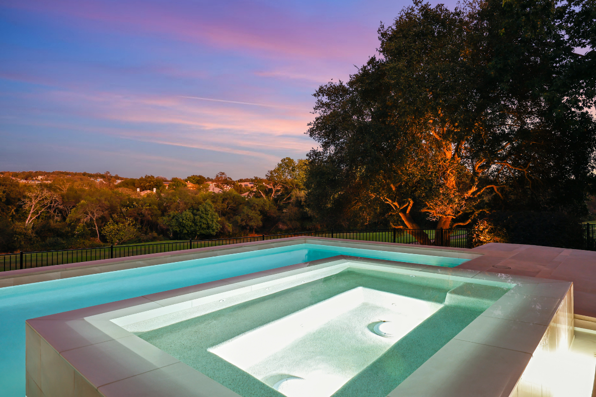 It was a challenge to install lights under the retaining wall, spa, and fire pit construction that was already complete, but we found a way to retrofit the lighting. We mounted FX’s LF light under the stone walls, modifying the fixture and using heavy-duty glue to affix the lights. The results were spectacular!
