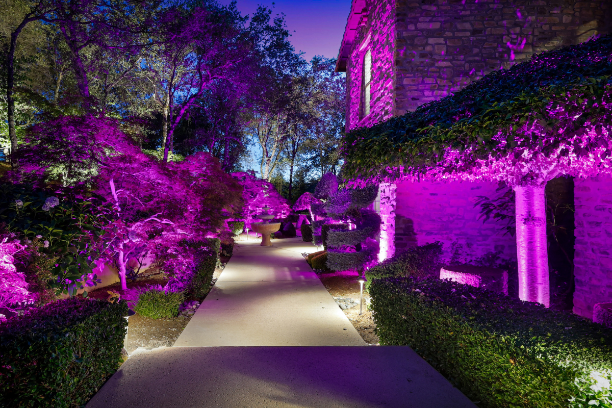 In total, there are 100+ fixtures in the front and back yards. The entire property is magical in the evening.