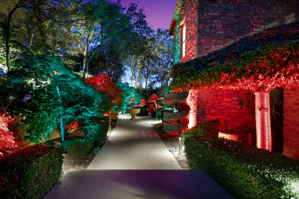 FX Luminaire’s premium Luxor landscape lighting system was a perfect fit. The client loved the idea of a smart-home, automated system that gave them the same control over their outdoor lighting as their indoors. And when they learned Luxor could incorporate color lighting, they were sold. No more wrestling with Christmas lights or manually adjusting for holidays—the system would let them create dazzling themes with the touch of a button.