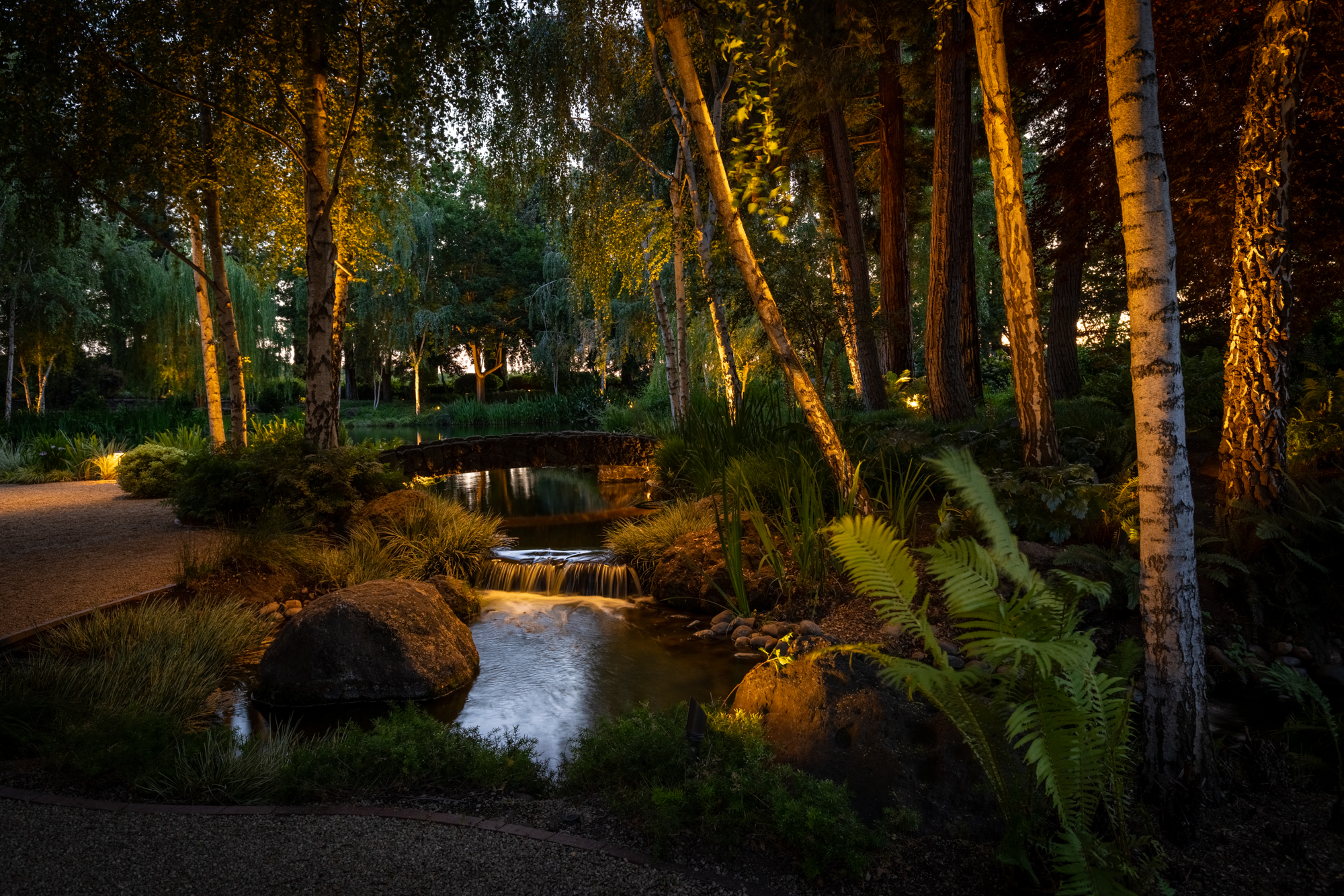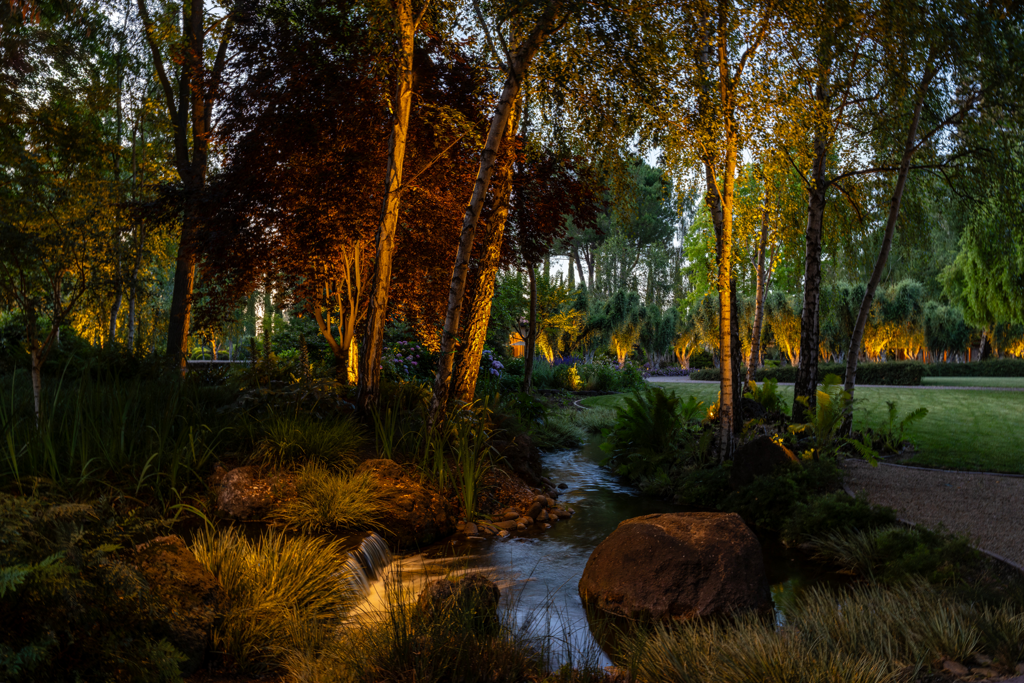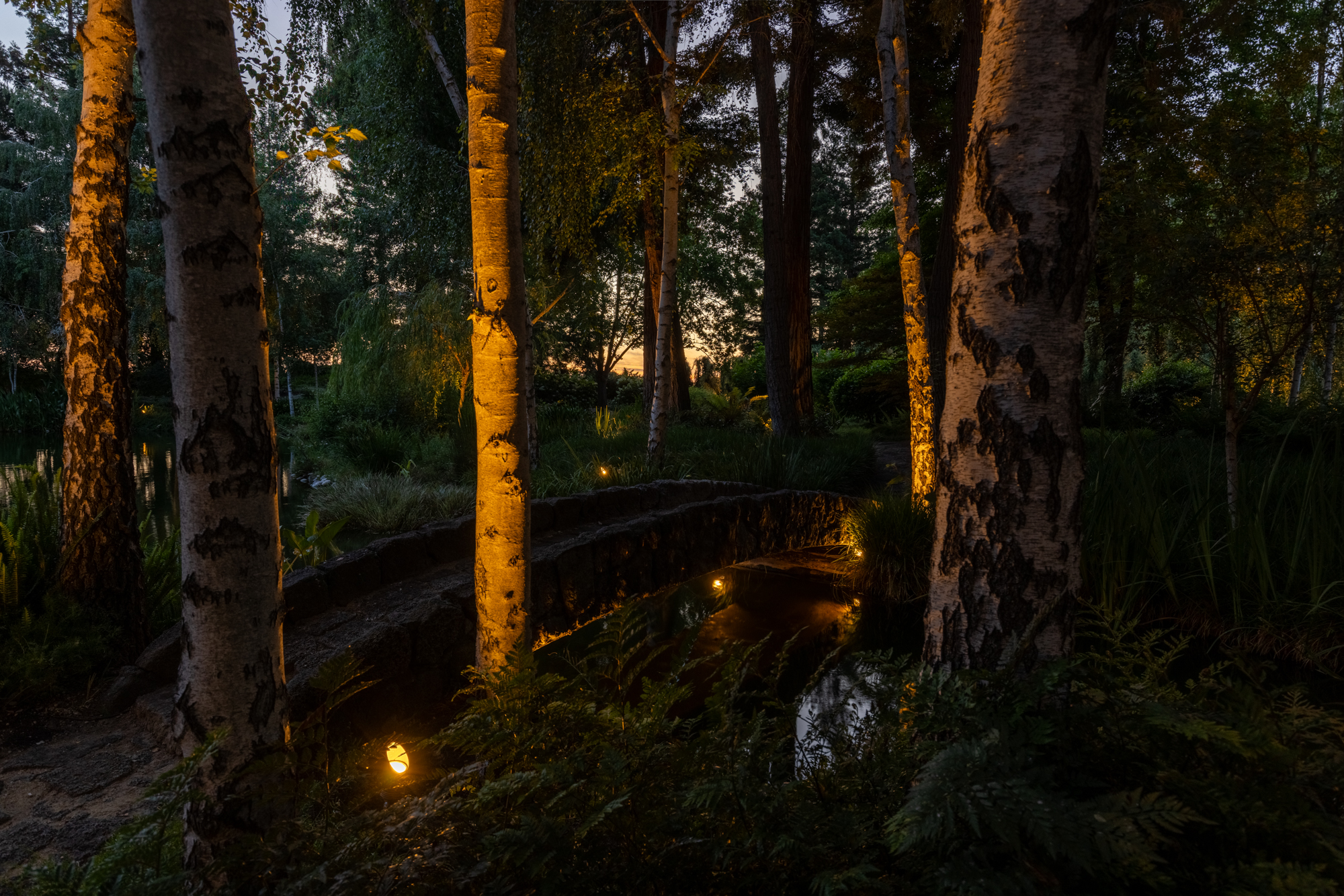 They weren’t looking for basic path lights or a quick lighting fix. They wanted an elevated experience that matched the beauty of their ponds, rare birds, custom bridges, and exotic plantings.
