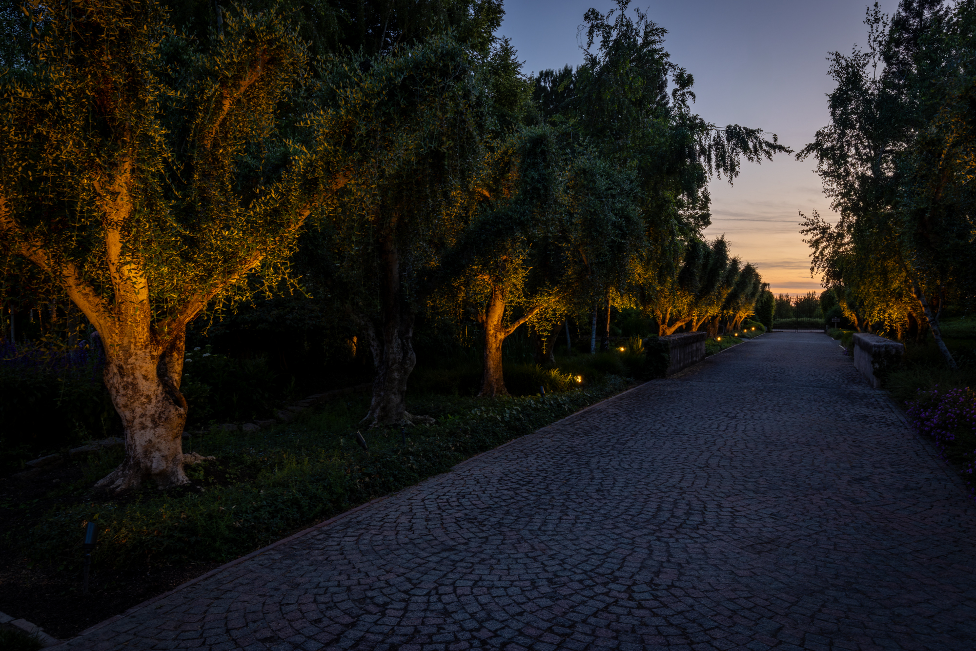 To meet the challenge, we designed a comprehensive landscape lighting plan centered around FX Luminaire’s Luxor system — the gold standard in outdoor lighting technology. We installed over 500 zoning and dimming fixtures and connected them with 25 linking transformers, allowing for complete control of light levels and moods across the entire estate.